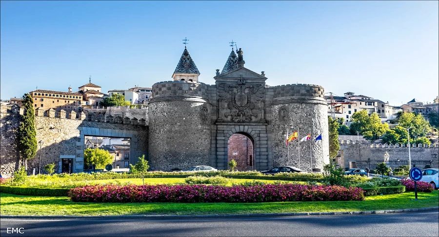 A Puerta de Bisagra é a principal porta de entrada da cidade histórica de Toledo, na Espanha. De origem moura e reformada no século XVI, destaca-se por suas torres imponentes, brasões imperiais e beleza arquitetônica renascentista.