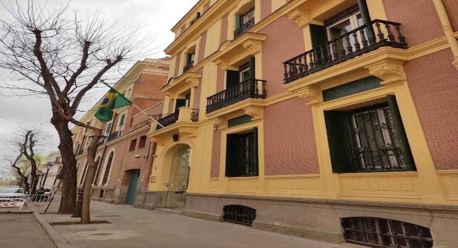 Edifício de arquitetura clássica com fachada elegante, onde se encontra a representação diplomática brasileira na Espanha. É o ponto de apoio a brasileiros residentes e visitantes.